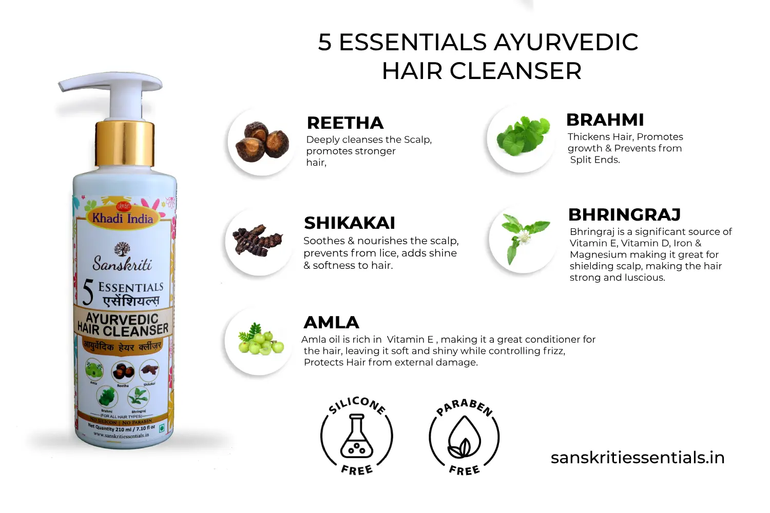 5 Essentials Ayurvedic Hair Cleanser with Reetha, Amla, Brahmi, Bhringraj, Shikakai – Khadi India