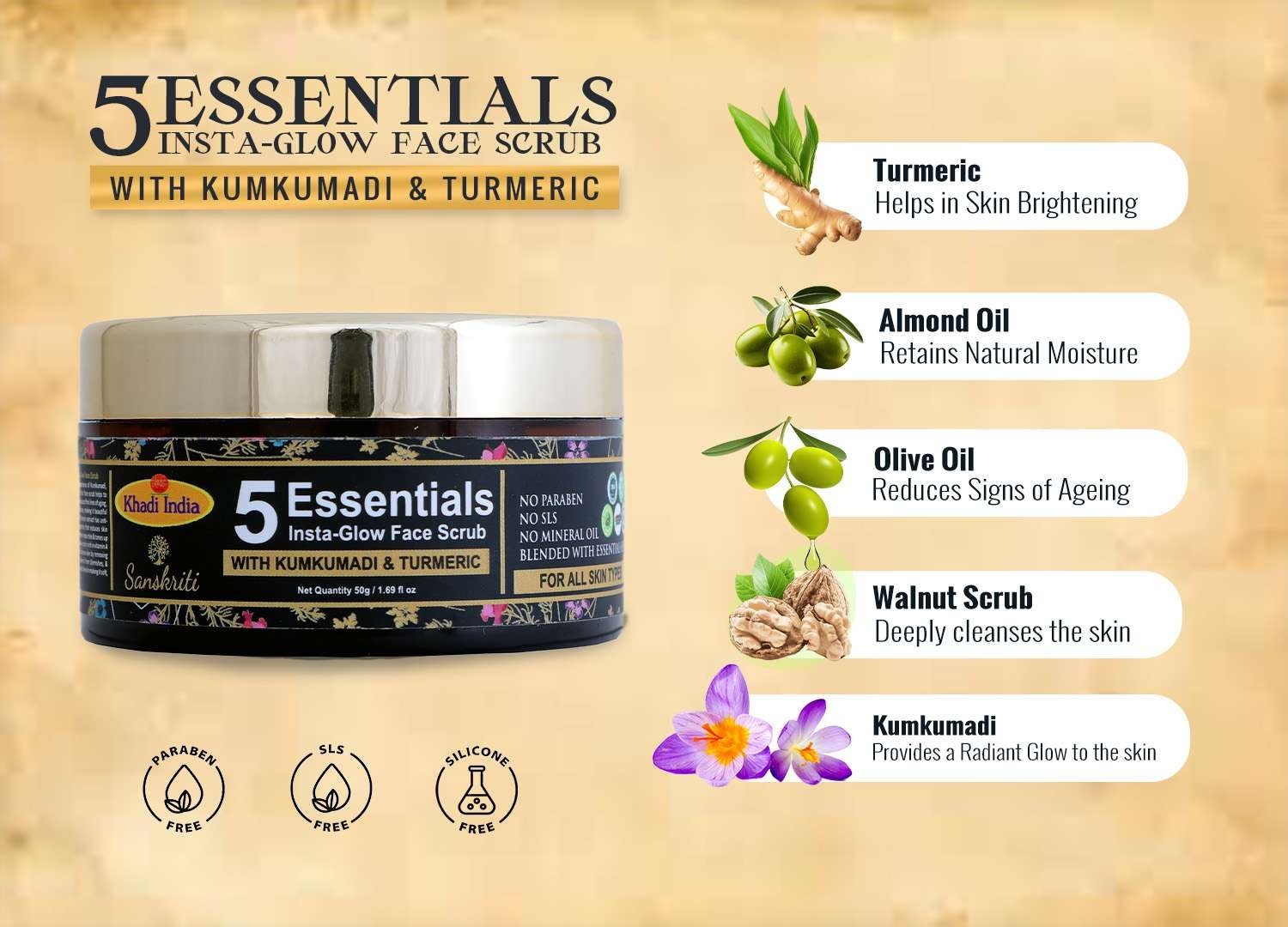 5 Essentials Insta-Glow Face Scrub With Kumkumadi & Turmeric