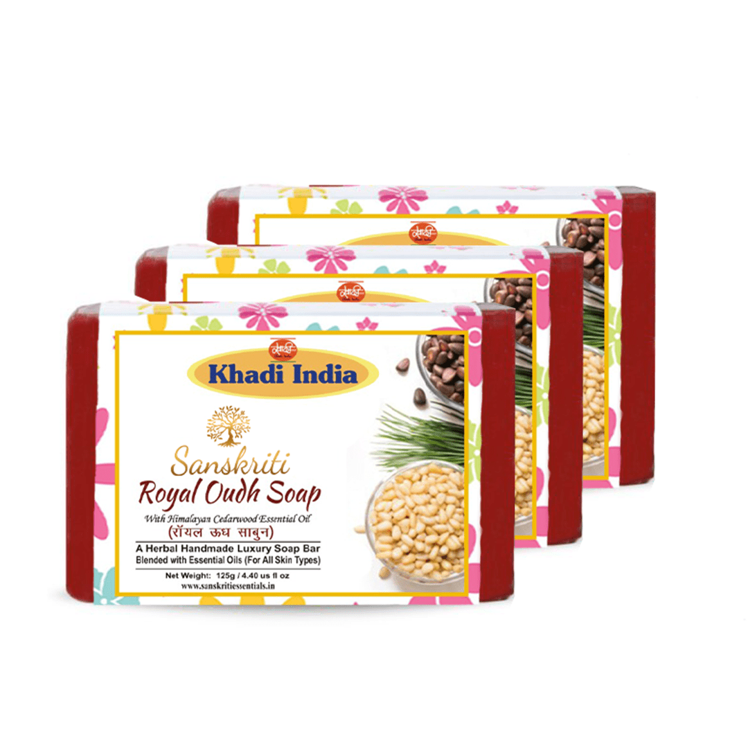 • KHADI -Royal Oudh Soap Enriched With The Goodness Of Himalayan Cedarwood Essential Oil, The Soap Is Used In Moisturizing Skin, Treating Acne, Scars, Minor Wounds, Pimples, Blackheads& Whiteheads, Whereas The Royal Oudh Fragrance Engages A Pleasant & Sweet Scent To The Soap.