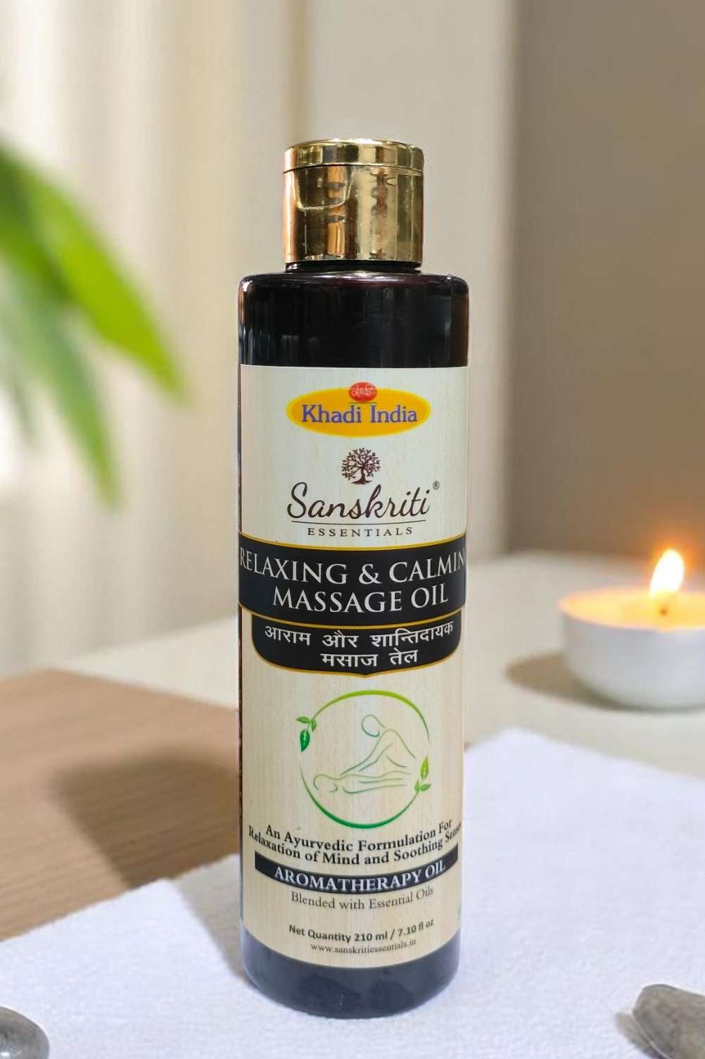 Relaxing & Calming Body Massage Oil by Khadi India is specially formulated with the blend of cold-pressed natural Ayurvedic oils & plant-based Essential oils that effectively calm. soothes and gives complete relaxation to mind and body. Enriched with the goodness of Sandalwood & Lavender oil, Geranium. Olive oil, Almond, and Jojoba oil, it provides a healthy &lustrous glow to skin making it soft and supple. This special Aromatherapy blend is highly beneficial in 0Vercoming anxiety and mood upliftment.